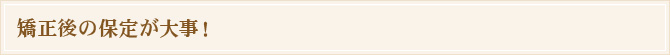 矯正治療で歯並びが整っても、動かした歯は元の位置に戻ろうとします(後戻り)。治療効果を長持ちさせるためには、矯正後の「保定」が大変重要になってきます。